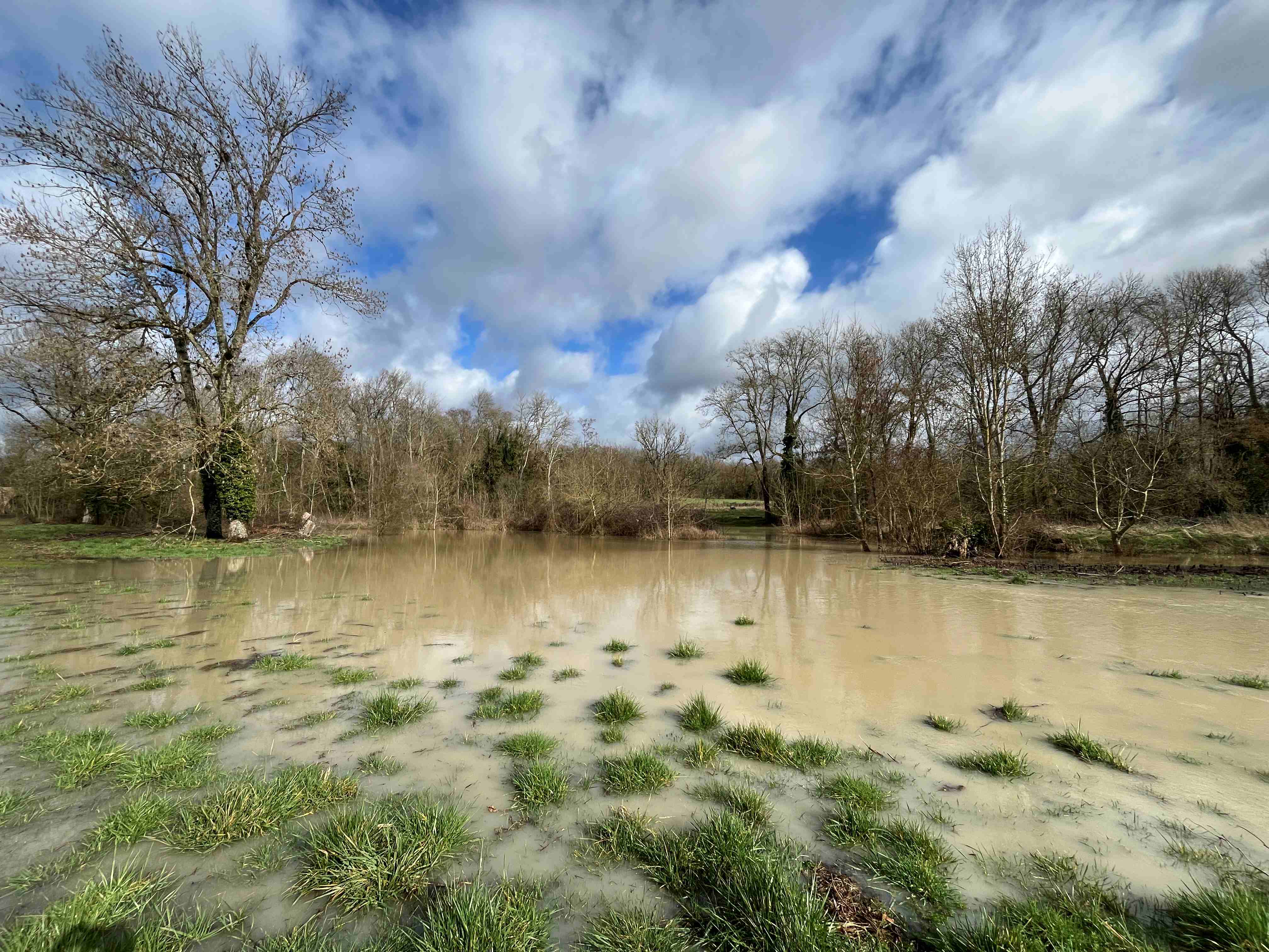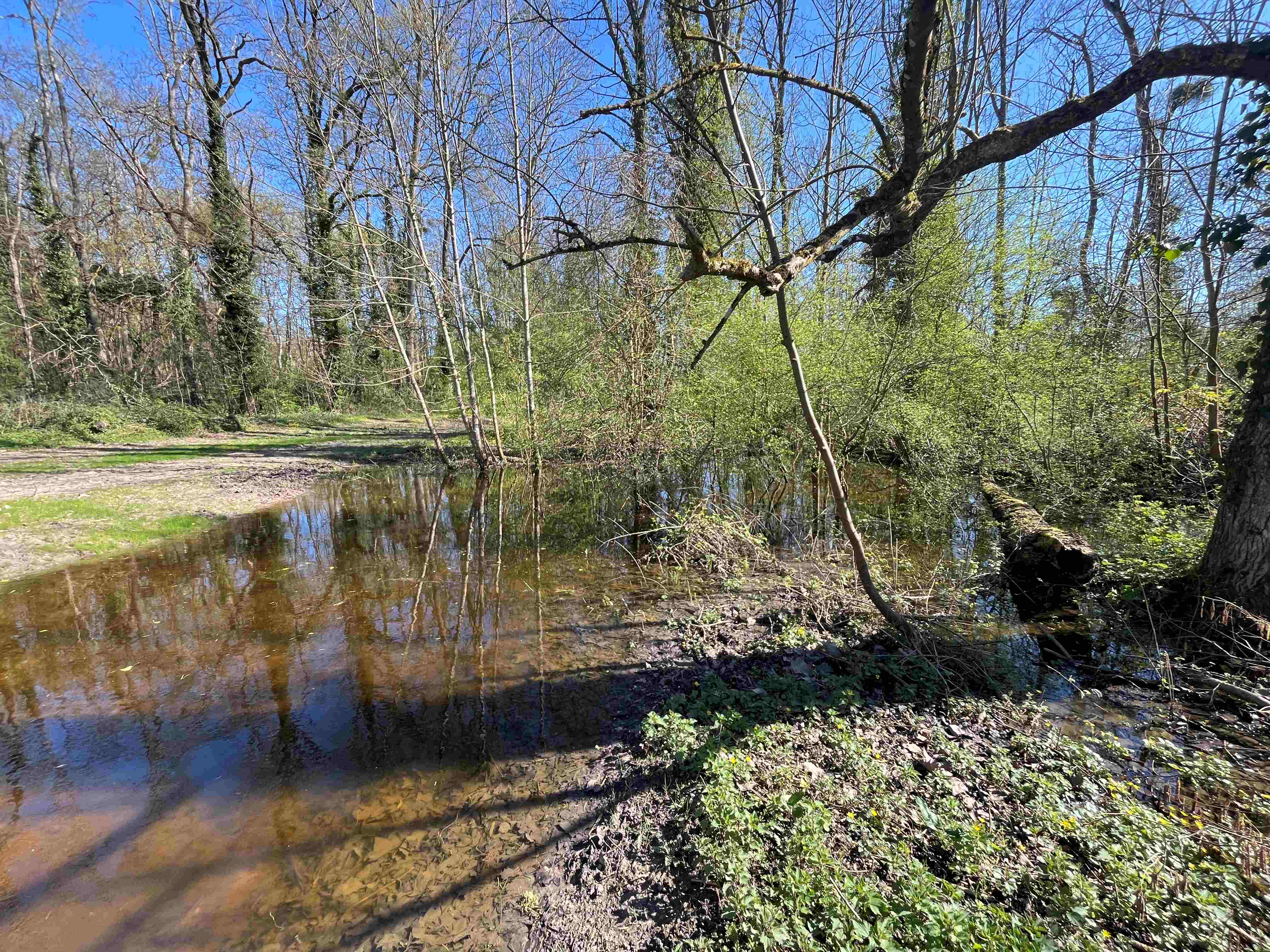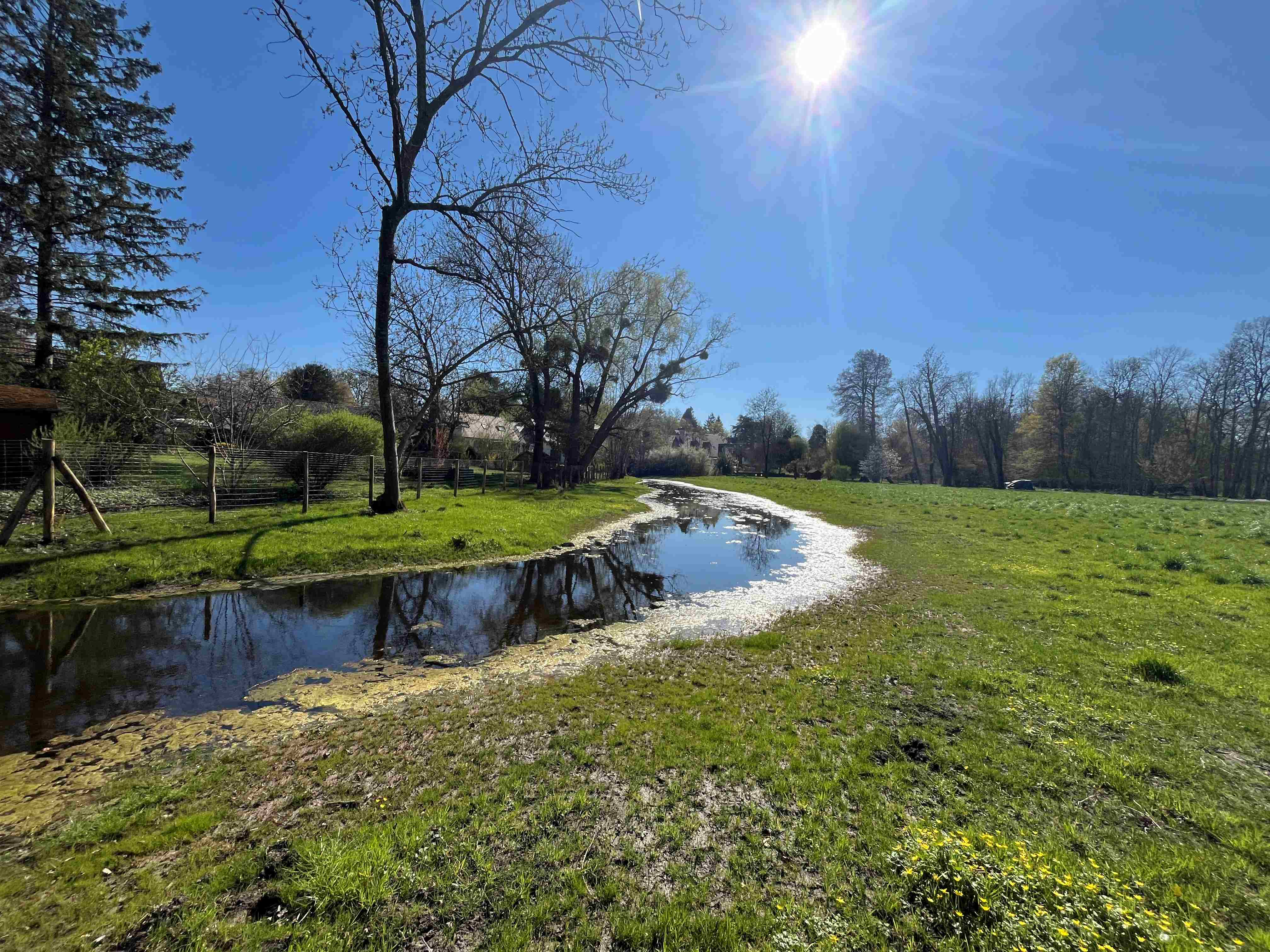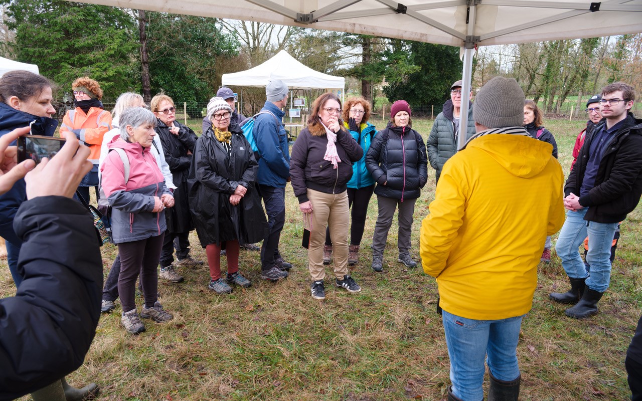 Des travaux de valorisation de la prairie en zone humide venaient de se terminer et le temps pluvieux des semaines précédents la maniesfation a permis aux personnes présentent d'observer la zone humide en action.