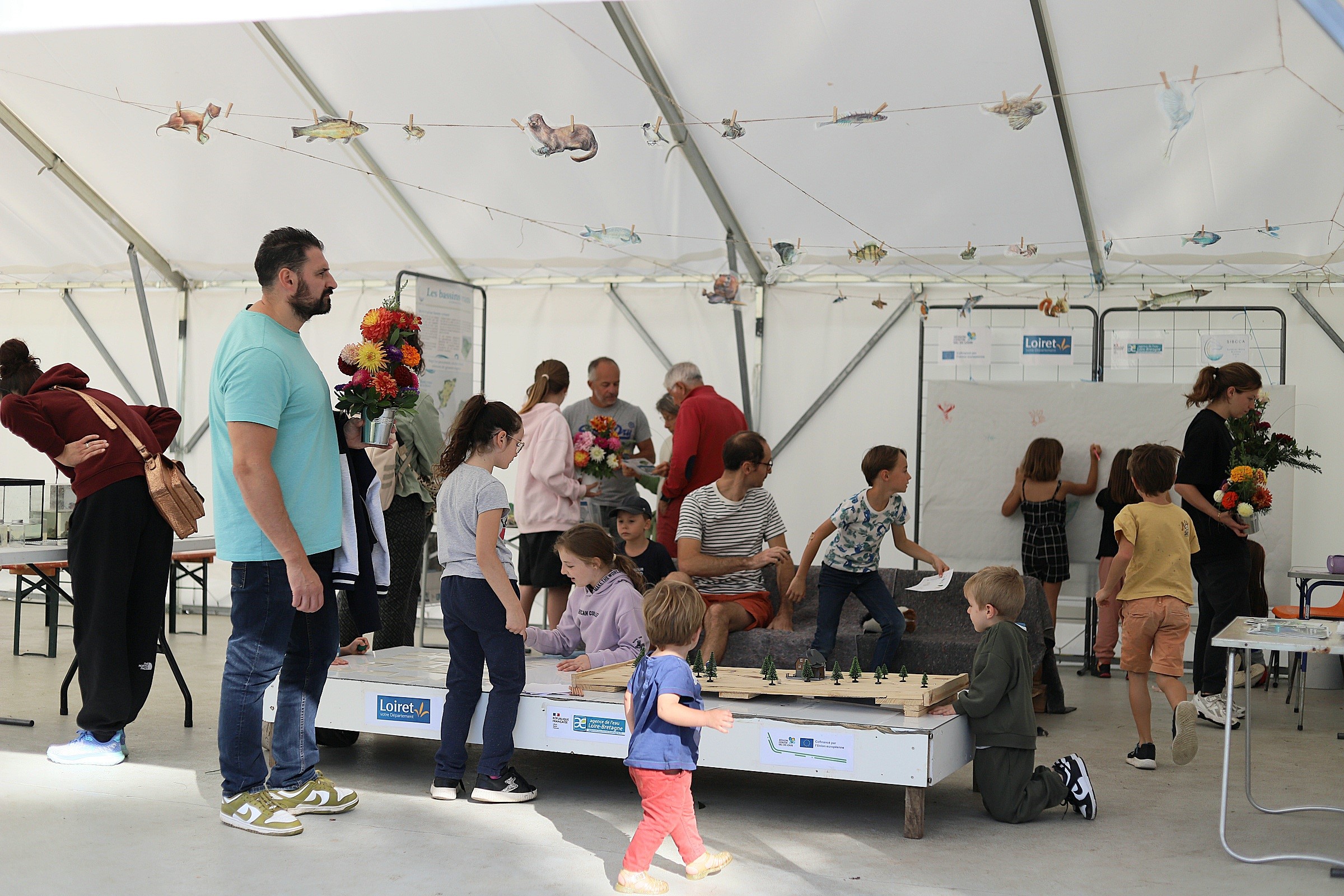 C'est avec une météo un peu capricieuse que le village Plouf à ouvert ses portes pour proposer des activivtés sur le thème de la problématique inondation. De nombreux stands animés par la Métropolle d'Orléans, le département pour le canal d'Orléans, la celulule de crise de la préfécture, les pompiers, et bien d'autres structures. Le syndicat a participé au stand de la Métopolle et a accueilli des centres aérés, des écoles, ainsi que du public.