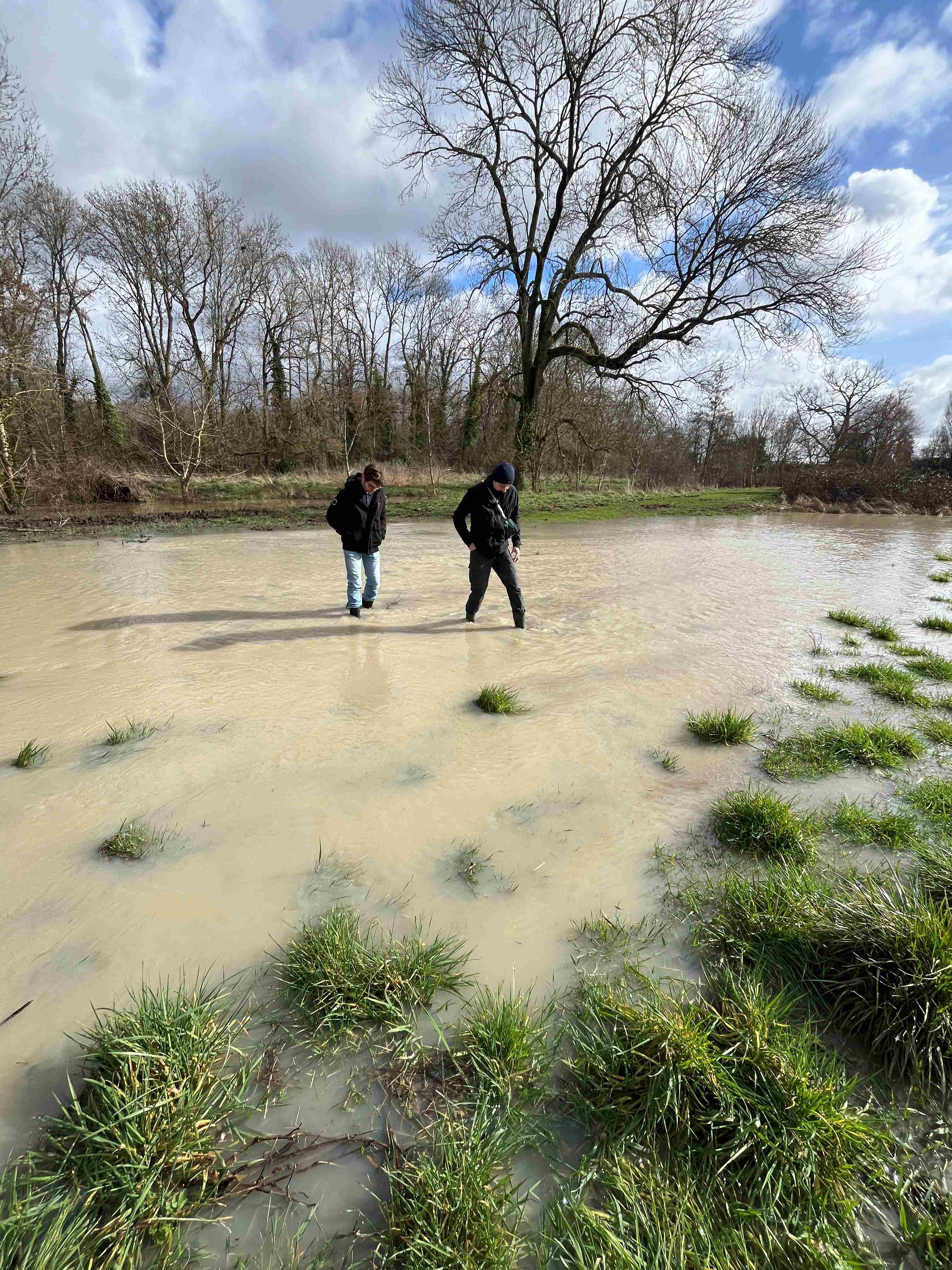Des travaux de valorisation de la prairie en zone humide venaient de se terminer et le temps pluvieux des semaines précédents la maniesfation a permis aux personnes présentent d'observer la zone humide en action.